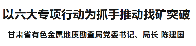 风劲潮涌催人进,奋楫扬帆正当时。“十五五”开局之年,甘肃省有色金属地质勘查局将始终胸怀“国之大者”,以“开局即决战、起步即冲刺”的奋斗姿态,锐意进取、真抓实干,全力推动新一轮找矿突破战略行动取得实效,进一步筑牢国家能源资源安全屏障,为谱写中国式现代化甘肃实践新篇章作出更大贡献。