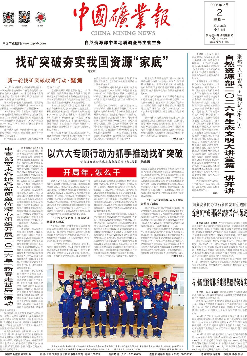 “十五五”时期,我国将完善战略性矿产资源的探、产、供、储、销统筹和衔接体系,强化战略性矿产资源的安全风险监测预警,优化战略性矿产资源目录,制定提高勘探、开发、储备能力的方案,持续推进战略性矿产资源增储上产。2026年作为开局年,我国将继续开展新一轮找矿突破战略行动,加强基础地质调查,健全找矿突破支持政策,促进战略性矿产增储上产。为凝聚行业奋进力量,本报1月19日起推出“开局年,怎么干”专栏,邀请各省级自然资源主管部门和地勘单位主要负责同志,围绕保障国家能源资源安全、推动重要矿产增储上产谈认识、谈思路、谈举措。