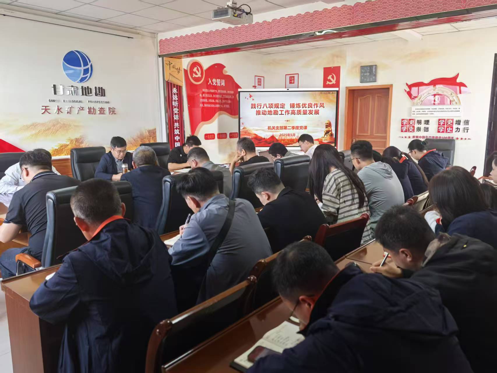 主题党日活动的主题为“严守八项规定,筑牢廉洁防线”,传达学习了《天水矿勘院纪律检查委员会关于印发2025年纪检工作要点的通知》和《酒驾醉驾赌博危害》,安排部署了支部关于酒驾醉驾赌博专项整治活动,随后观看了《作风建设永远在路上》警示教育片,并进行了交流发言。