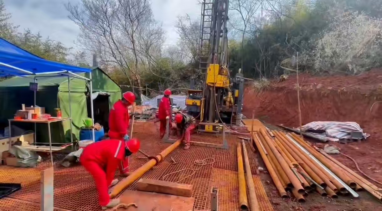 抵达当日,项目组便成立临时党小组,坚持把组织生活开到机台一线。面对茶亭地层破碎、倾角多变、深孔易斜的复杂条件,这群年轻人心里憋着一股劲:越是硬骨头,越要啃下来;越是开拓市场的关键一役,越要扛起重担。截至2月13日,项目已累计完成进尺440米,孔斜、孔径、岩心采取率等各项关键技术指标均达到设计要求,有力回应了甲方的信任与期待。