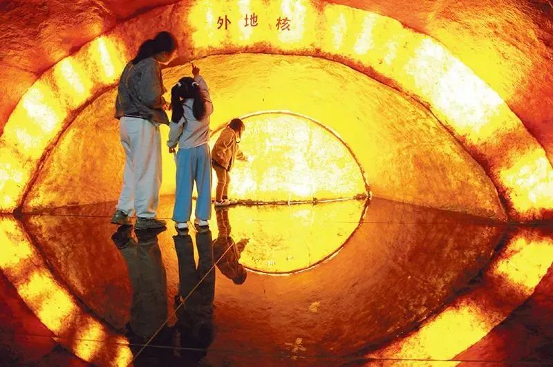 随着科学技术的不断进步,人类凭借探测、钻探、观测、模拟实验等一系列科学手段,逐步揭开地球深部的神秘面纱。图为2024年4月21日,游客在南京地质博物馆内的地球内部构造模型前参观。 人民图片 刘建华 摄