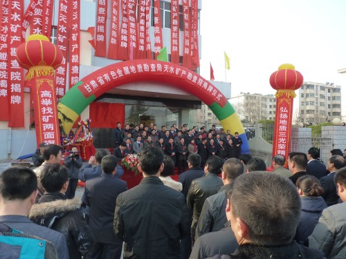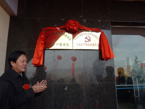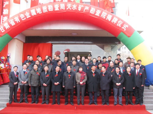 参加揭牌仪式的领导有中共天水市委副书记、政协主席杨维俊,天水市人大常务委员会副主任王子生,天水市人民政府副市长温利平,甘肃省有色金属地质勘查局党委委员、副局长王兰生,甘肃省有色金属地质勘查局办公室主任王军锋,天水市委直属机关工委书记王永祥,天水经济技术开发区主任赵建强,天水市国土资源局副局长王虹,天水市麦积区委副书记、区长何东以及天水市、麦积区、地勘系统和兄弟单位等有关领导及全体职工200多人参加了揭牌庆典仪式。