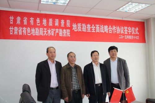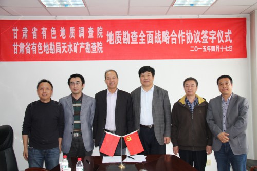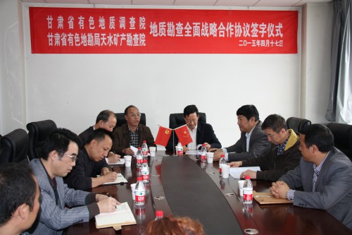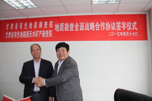 为主动适应新常态下地勘经济发展的新形势,抢抓发展新机遇,充分发挥两院人才、技术优势,挖掘新动力,实现新发展,推动地勘工作实现新跨越。2015年4月17日,我院与甘肃省有色地质调查院在兰州签订了地质勘查全面战略合作协议。我院院长、党委书记刘举东和地质调查院院长韩要权代表双方签署《甘肃省有色地质调查院-甘肃省有色地勘局天水矿产勘查院地质勘查全面战略合作协议》。省有色地勘查局副局长、总工程师、党委委员高兆奎出席签字仪式并对两院全面战略合作提出新要求;局地质处处长周俊烈主持签字仪式。