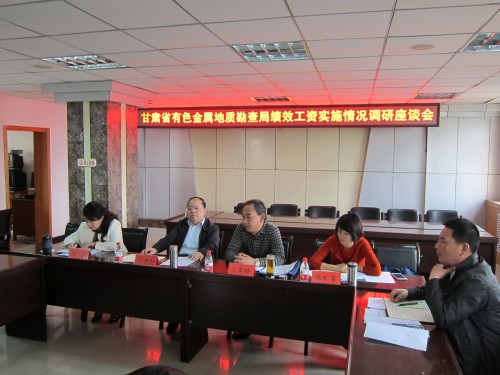 2015年5月13日至14日,省有色地勘局党委委员、副局长丁守和一行四人来我院,就绩效工资的实施情况进行专项调研。在两天的调研中,先后与院领导班子、中层干部代表、专业技术人员代表、在职职工代表及离退休人员代表分别进行了座谈交流。