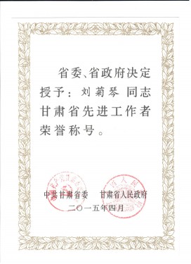 2015年4月,中共甘肃省委、甘肃省人民政府授予刘菊琴“甘肃省先进工作者”荣誉称号。