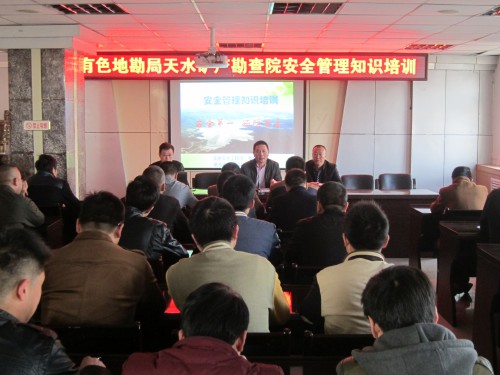 2016年3月11日,我院举办安全管理知识培训。分管安全生产工作的副院长刘卫东在开班式上作动员讲话,地勘公司各项目部主任、项目负责人,各生产经营单位、各地质项目安全员,后勤服务中心、材料科、办公室的安全员60余参加了培训,探矿安全科科长冯利主持开班式。
