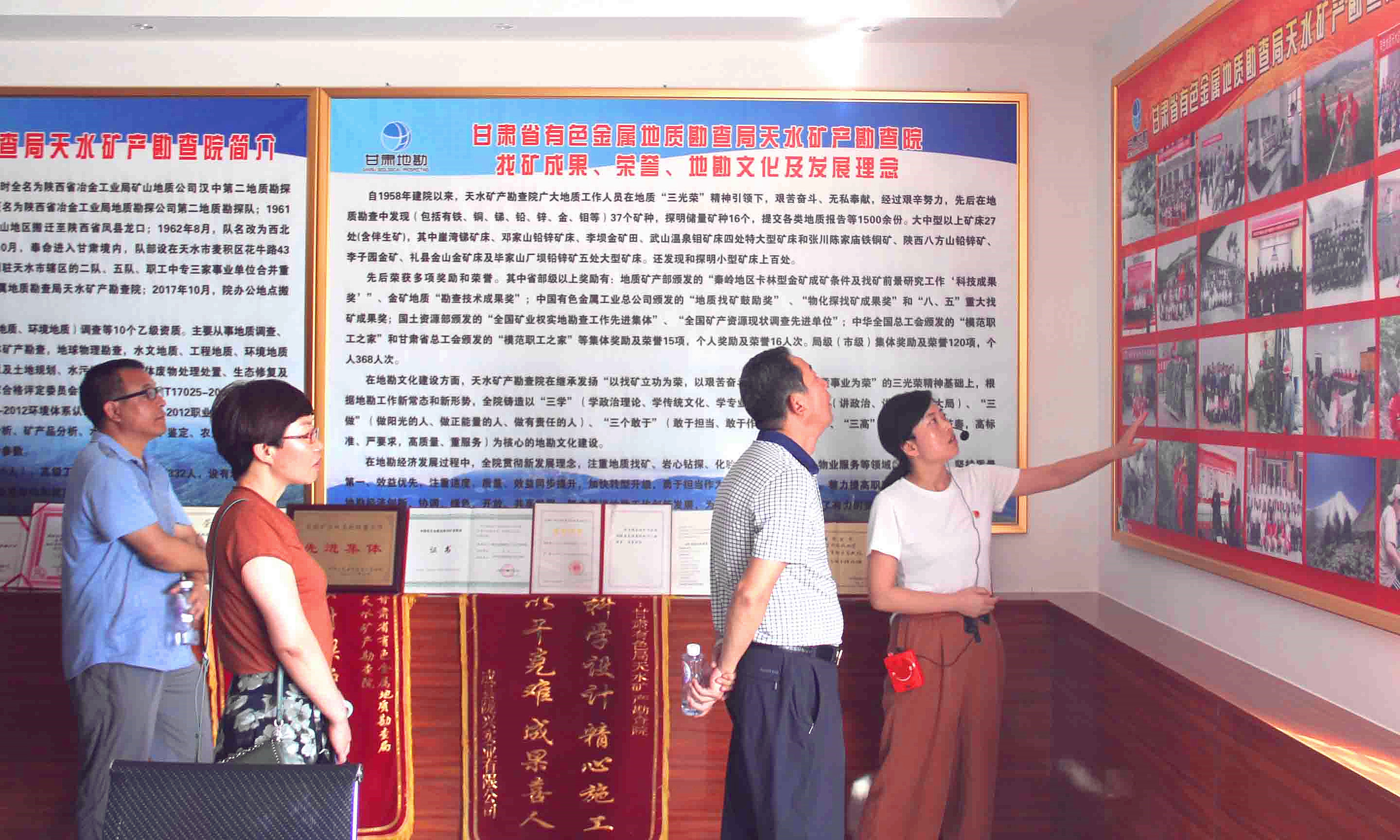 石生明一行参观了我院职工食堂、多功能厅、测试中心科技楼及各分析室的仪器设备、“刘菊琴劳模创新工作室”、 地质副样库、体育活动场所、机关办公楼、职工书屋、荣誉室等,并在荣誉室听取了我院发展历史、找矿成果及荣誉的介绍,在测试中心科技楼会议室观看了“凝心聚力 创新致远”为主题的宣传片,听取了测试中心负责人就中心发展的目标、阶段及现状的详细介绍,了解了测试中心人员、技术、设备和完成产值等情况。