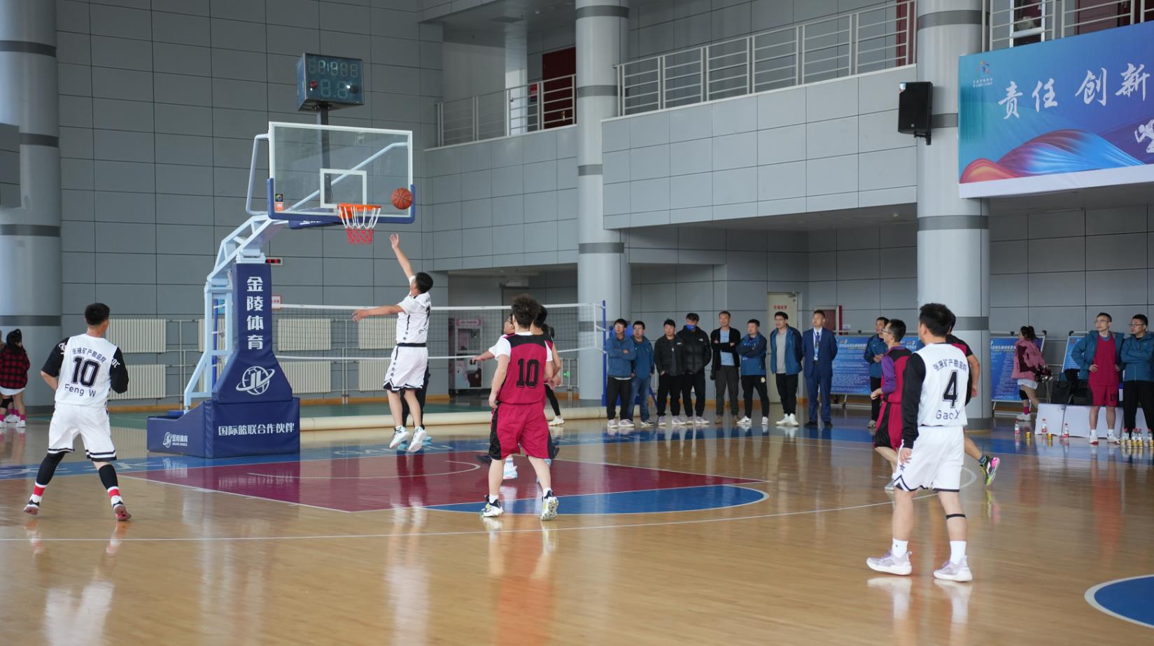 张掖矿勘院对决工勘院的比赛中,张掖矿勘院作为上一届冠军,首节比分稍微领先,但后三节工勘院全力以赴,进攻、防守二合一,连续抢得进攻篮板,强劲补篮、突破上篮,最终以24:15的绝对优势胜出,三战三胜,取得佳绩。