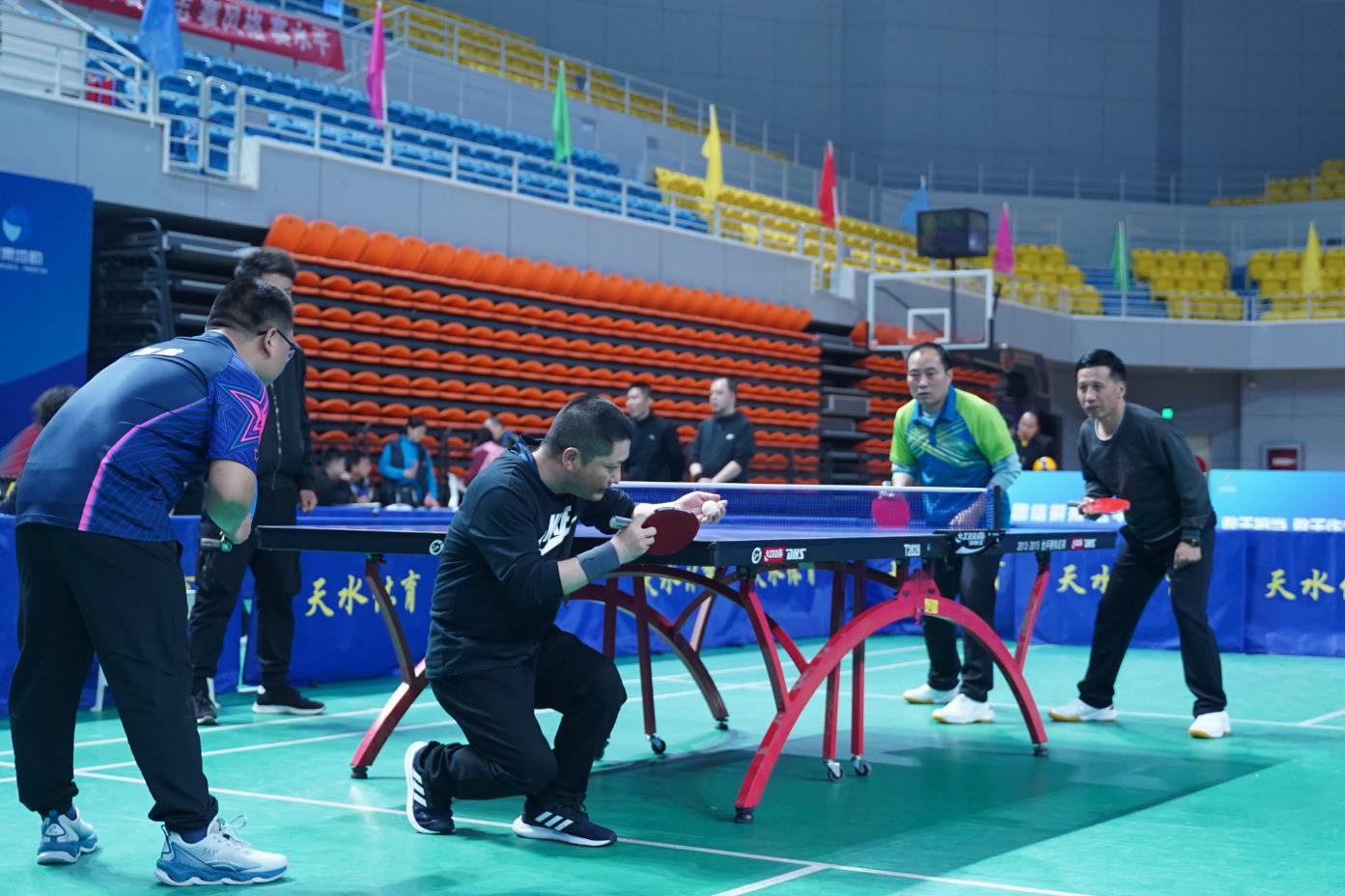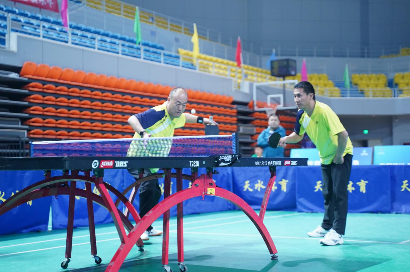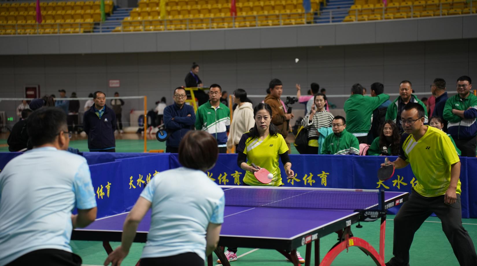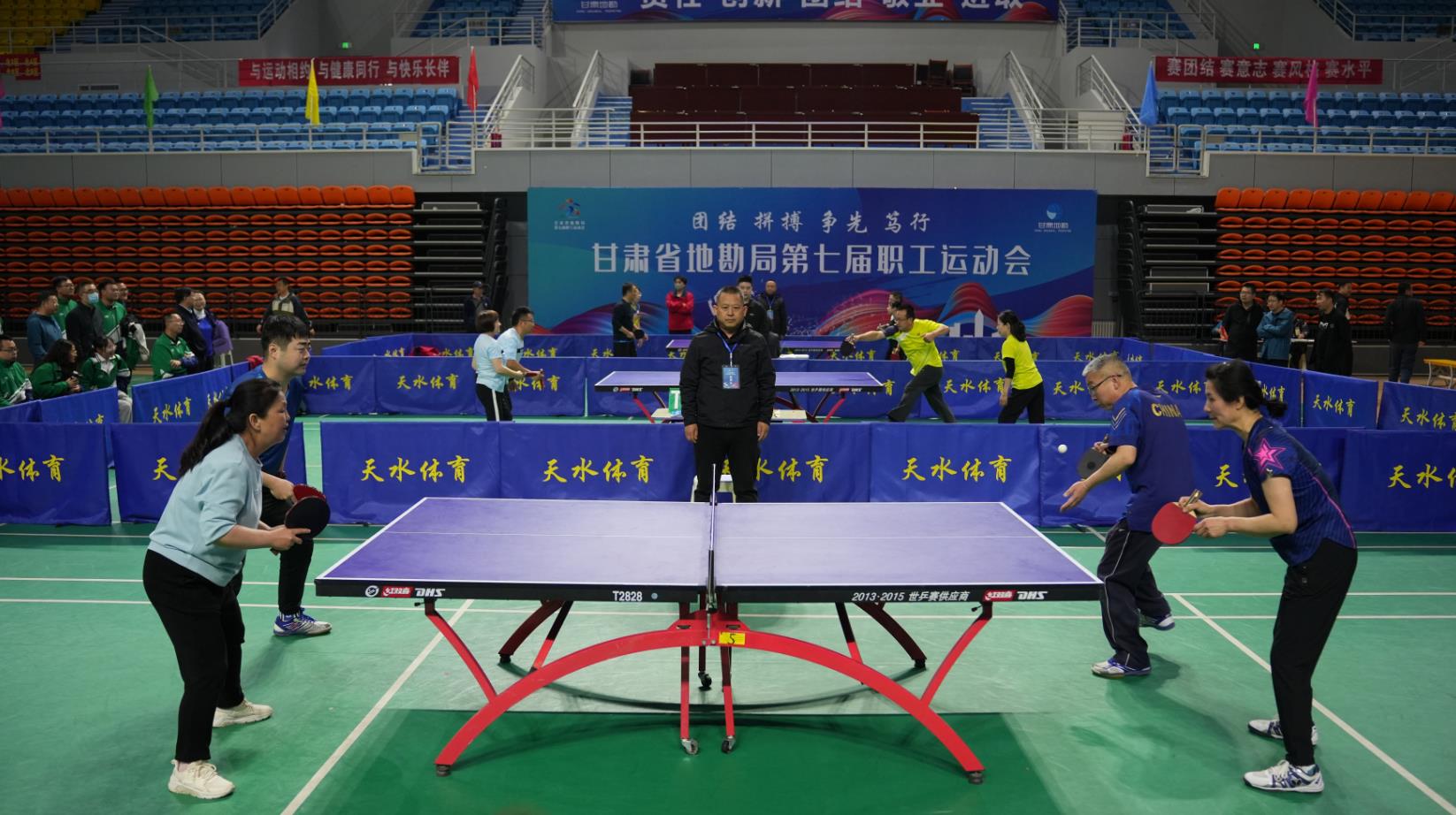 3月31日上午,乒乓球混双比赛经过激烈的淘汰赛和半决赛,决赛在白银矿勘院选手喻文华、魏志乾和天水矿勘院选手原爱萍、杨鹰之间展开。