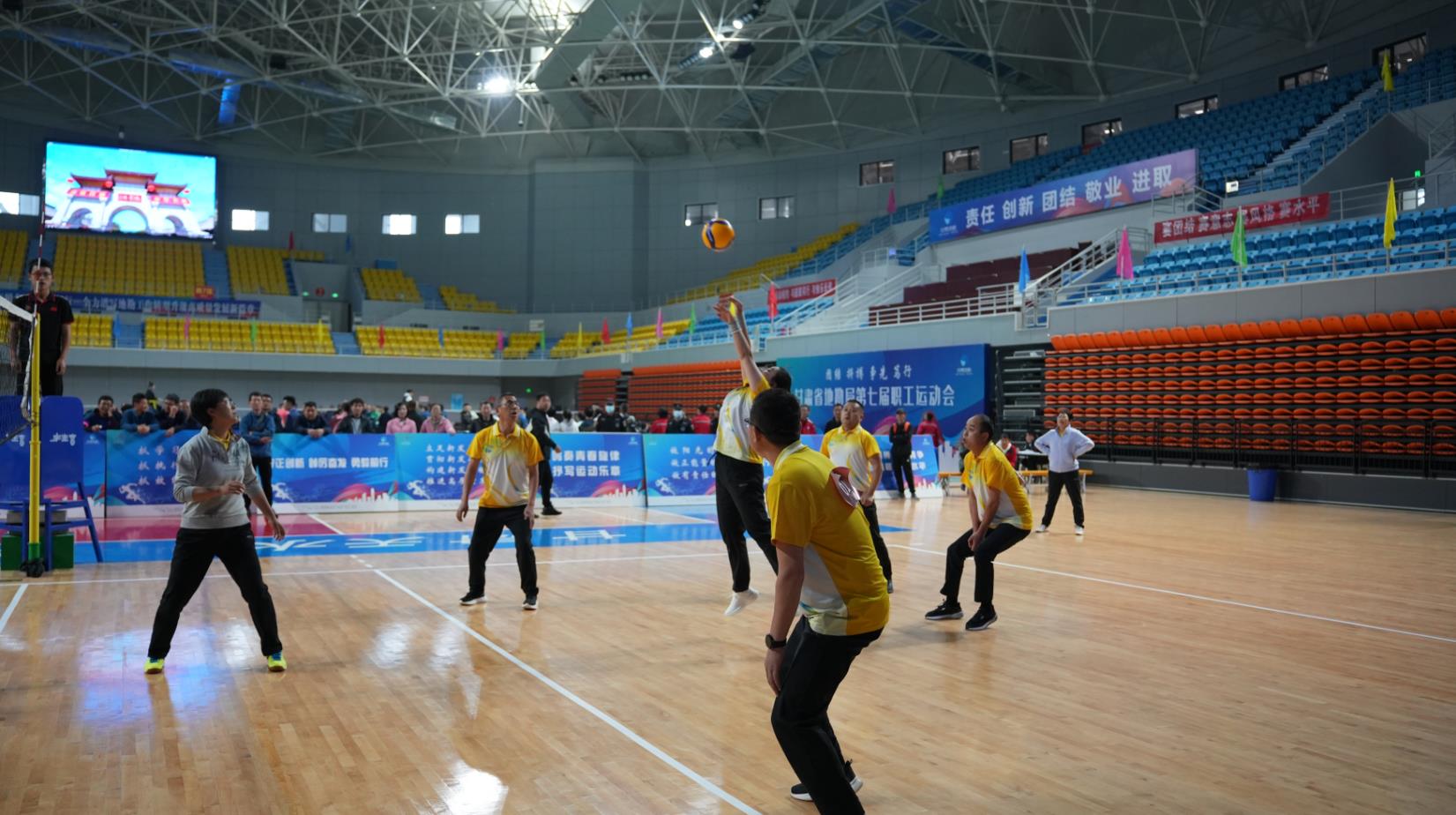 小组赛最后一场比赛为天水矿勘院对阵局机关。双方轻装上阵,面对实力较强的天水矿勘院,局机关不急不躁,排球在双方场地有来有回,互有攻防,最终,在友好的氛围中,天水矿勘院取得胜利。至此,小组赛全部结束。