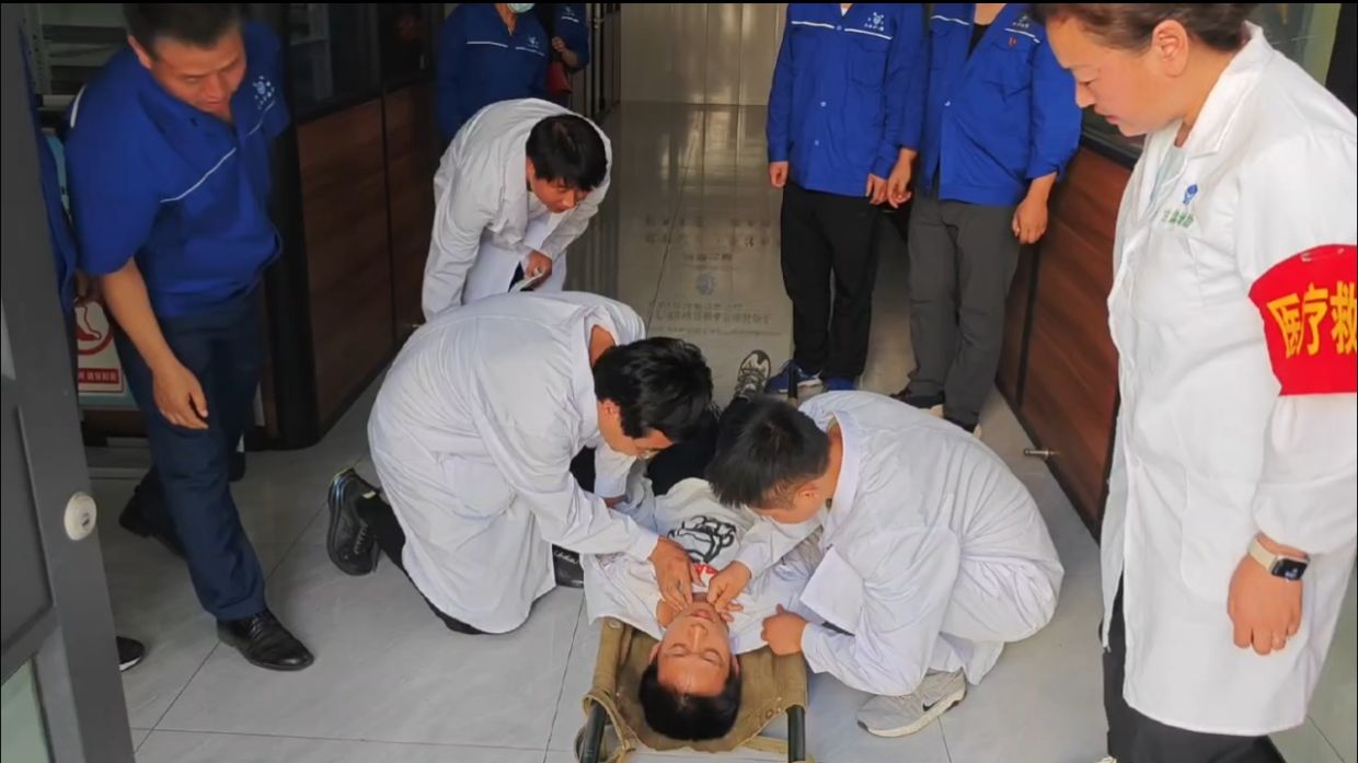 演练在安全员大声呼叫“有人触电啦、快来救人!快来救人!”中拉开序幕。本次演练通过模拟测试中心人员在进行样品制备时,球磨机空气开关掉落,被卷入高速旋转的球磨机,使设备外壳导电,职工刘某(伤员)触碰到带电的设备外壳,发生触电事故。事件发生后,立即启动《触电事故应急预案》,开展现场紧急处置。在总指挥的现场指挥下,抢险救援组、医疗救护组、后勤保障组迅速到位,对触电人员实施心肺复苏、人工呼吸、现场警戒,并拨打120救援电话、转移伤员至医院等要素进行了演练。演练现场,救援快速到位、事故上报有条不紊、医疗救护及时,真实模拟了触电事故现场处置工作的全过程,达到了预期的效果。