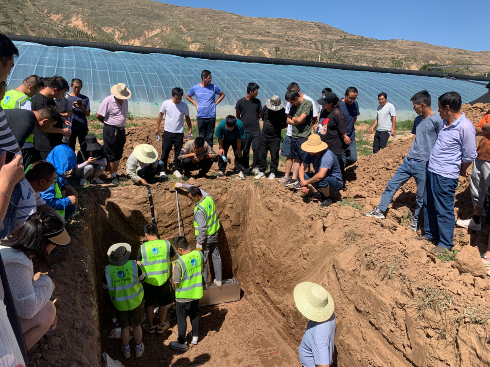 为持续提升我院土壤制备、外业调查采样技术人员在第三次土壤普查外业调查采样与质量控制等方面的业务水平,8月13日,受三普办委托,我院组织11名专业技术人员前往漳县,配合省三普办组织定西市漳县相关人员开展的第三次土壤普查剖面样、表层样采样实操实训。本次培训主要针对剖面样和表层样调查、描述、采样的各环节质量控制要点,并详细讲解了外业调查采样关键线路、关键技术、调查重点等专业知识。我院11名技术人员通过专家现场讲解、指导,规范地演示了剖面样和表层样的采样规范,以及剖面挖掘等专业技巧,通过演示带领他人学习的同时,也加深了自身对关键技术要领的理解和掌握。