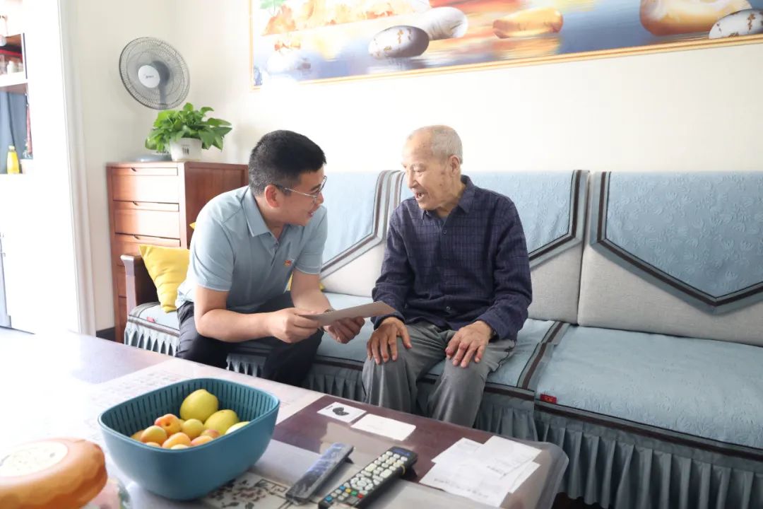 6月25日,侯军林一行首先来到98岁高龄的离休老党员潘登元家中,潘老曾亲身参加过解放战争和抗美援朝战争。交谈中,潘老高兴地说:“今年6月,我孙子也光荣地成为一名中国共产党预备党员了!我真是又高兴又自豪。”潘老回忆他是在抗美援朝战场上由预备党员转为正式党员的,随后,让家人拿出一块挂满“光荣在党50年”、“抗美援朝70周年”等纪念章的红布,和大家一起分享荣誉。侯军林关切地询问了潘老的日常起居和照料情况,表示像潘老这样的老党员、老干部是党和国家的宝贵财富,是我们学习的榜样。他衷心祝愿老人家健康长寿、生活幸福,并叮嘱家属细心照顾好老人的生活起居。
