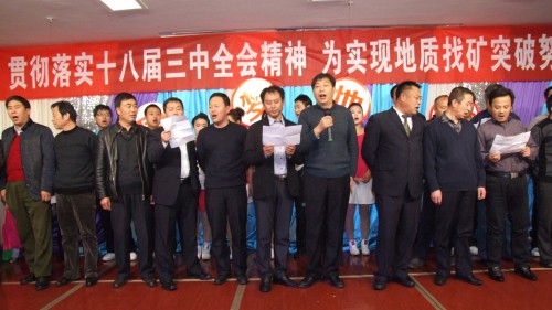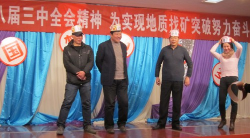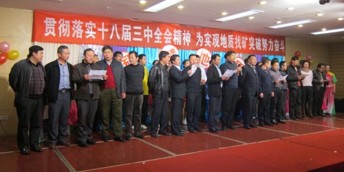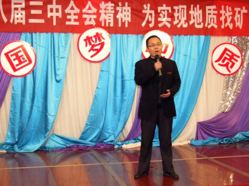党委书记刘举东在晚会致辞中简要回顾了2013年我院开展党的群众路线教育实践活动情况,并勉励生产经营部门在党支部的带领下认真贯彻落实十八届三中全会精神,以党的群众路线教育实践活动为契机,凝聚力量,把“团结拼搏 高效创新”的企业理念,运用到地勘经济发展中去,为实现我院转型跨越发展和地质找矿突破注入新的生机和活力。